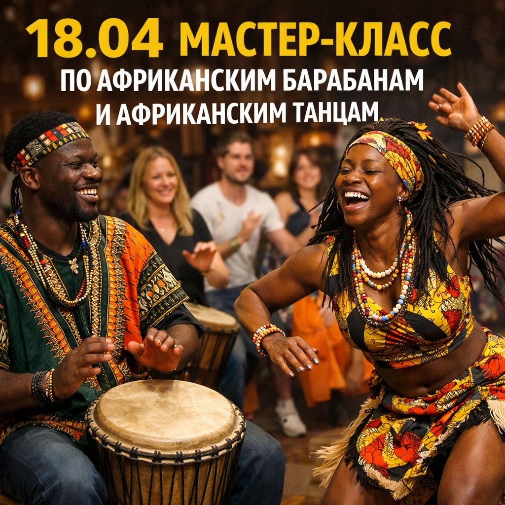 18 апреля в 12:00 мы отправляемся в маленькое путешествие в Африку — без перелётов, но с полным погружением 💃🥁